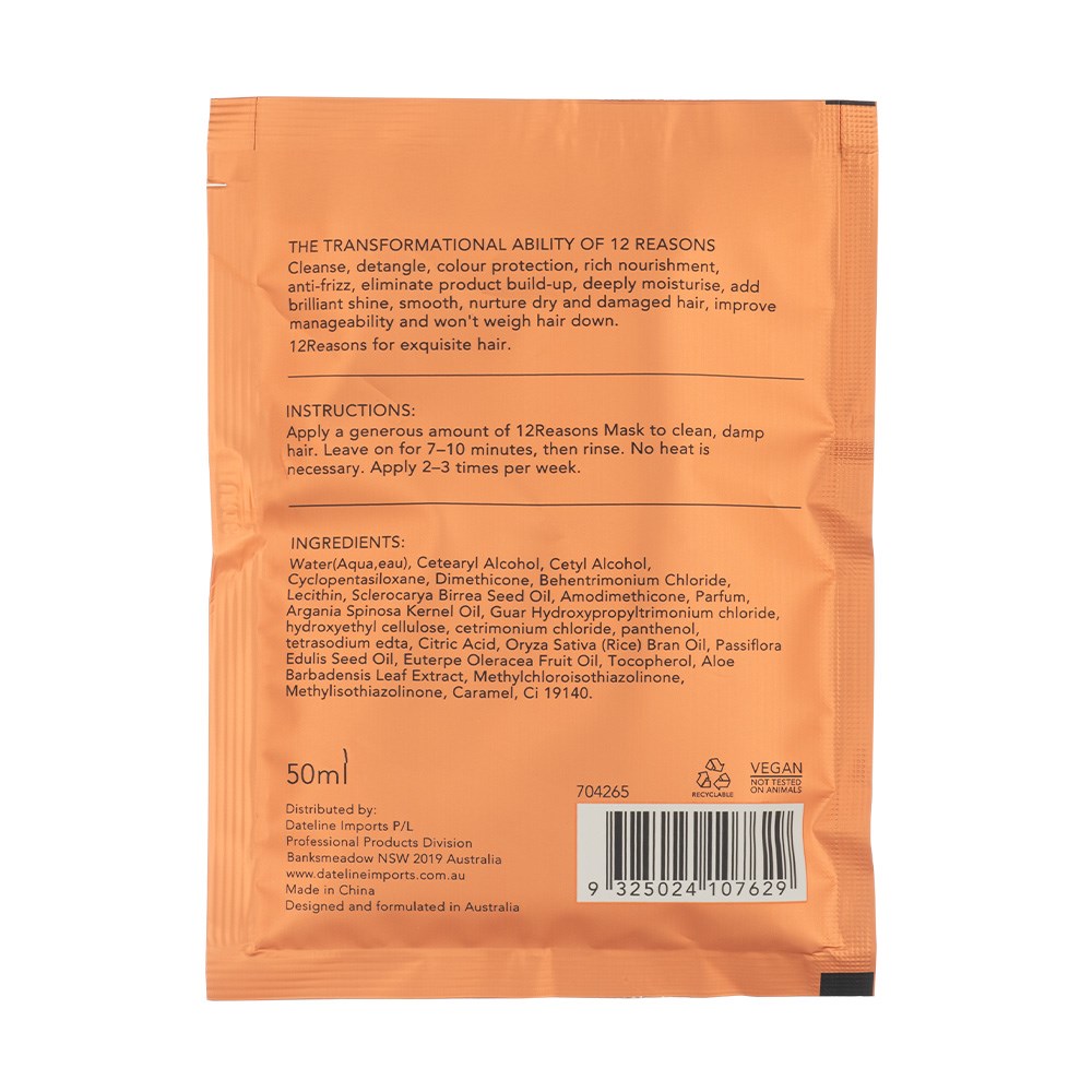 12Reasons Marula Oil Hair Treatment Sachet is perfect for travel, mixing and matching or an introduction to the brand. Generous 50ml size provides 2-3 applications, an ideal companion for anywhere, anytime. 12Reasons Marula Oil Hair Treatment beautifully hydrates and smooths dry, frizzy hair. Richly nourishing, hair is left smooth, silky and touchable. Fruit and seed oils enhance shine and softness. 12Reasons Marula Oil Hair Treatment brings smoothness back to frizzy hair in only seven minutes!