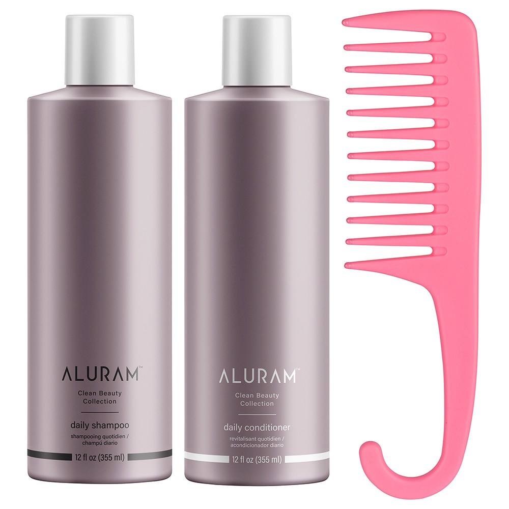 The Aluram Daily Sale Pack embraces powerfully plant-driven, modern and clean formulas, free from ingredients which are harmful to your hair. Starting with a base of richly hydrating Coconut Water, Aluram Daily Shampoo and Conditioner are infused with the nourishment powerhouse of Marula Oil, packed with nourishing fatty acids, antioxidants and macro-nutrients. Vegan, sulphate free, gluten free, paraben free, silicone free and colour safe. Made with care in the USA. Clean Beauty. Clear Conscience.