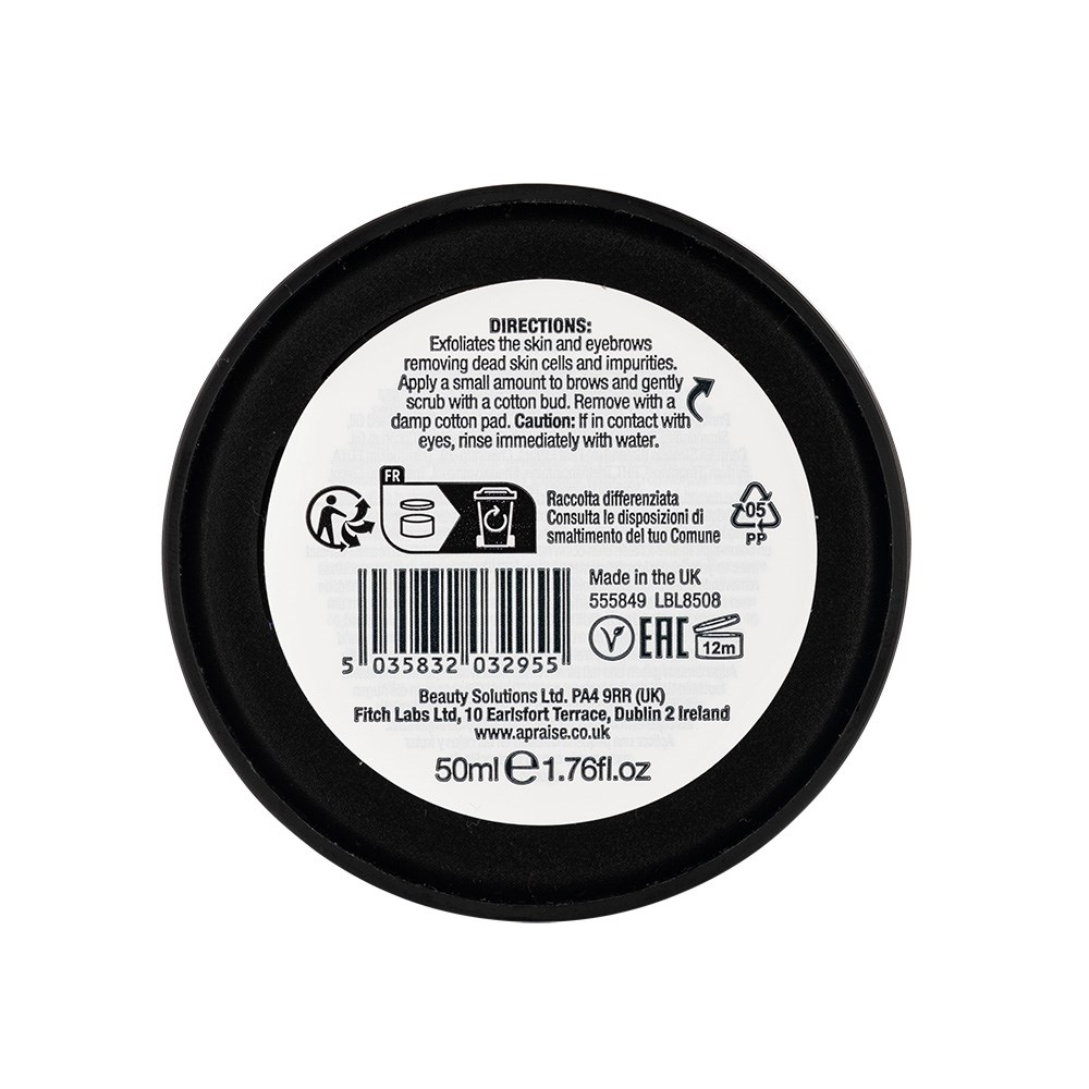 To Use: Apply a small amount of the Apraise Brow Scrub to brows and gently scrub with a cotton bud. Remove with a damp cotton pad.
