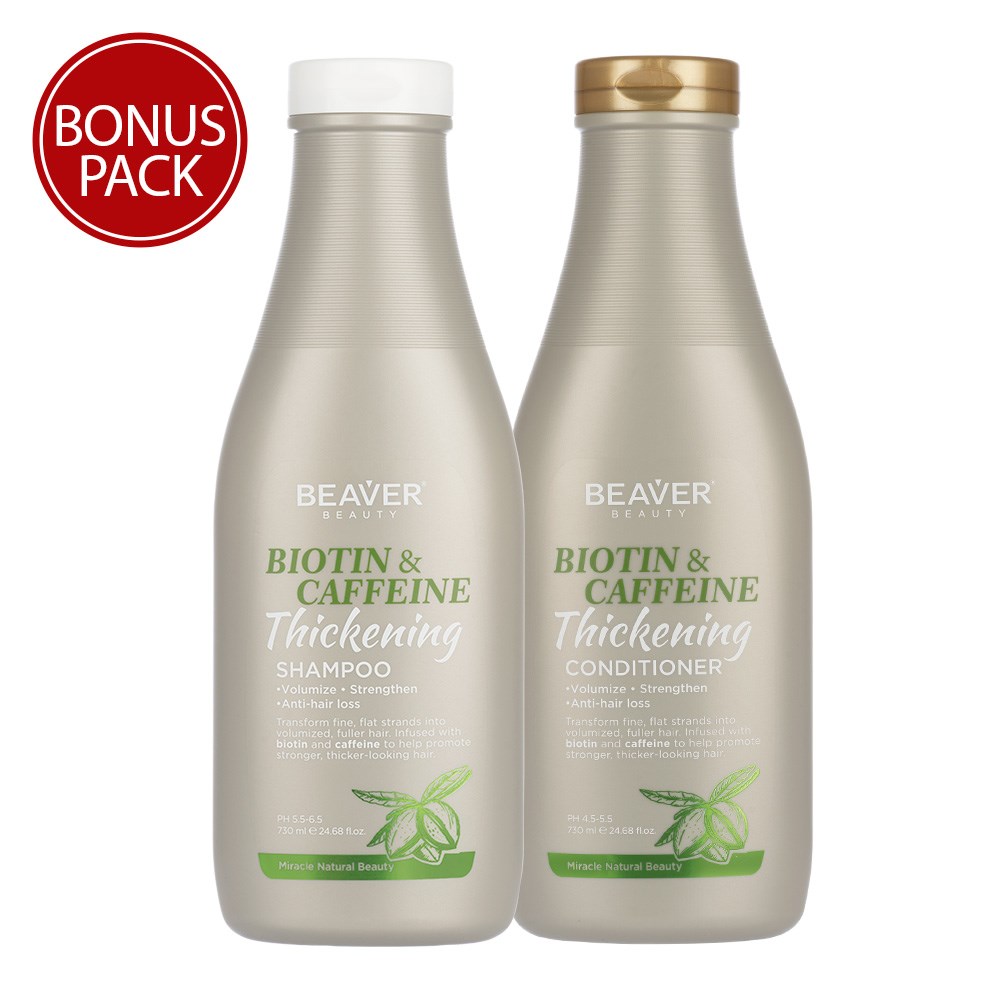 To Use: Apply Beaver Biotin And Caffeine Thickening Shampoo to wet hair, gently massage and rinse. Follow with Beaver Biotin And Caffeine Thickening Conditioner, massage into hair from root to ends. Rinse. Style as desired.