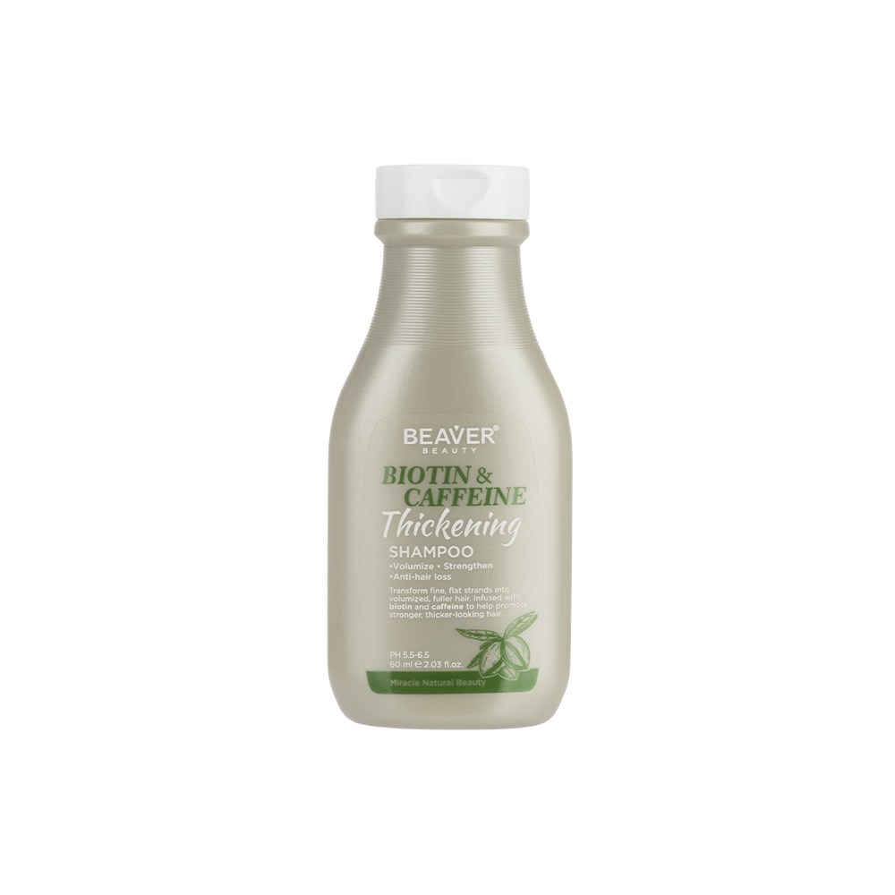 Help transform lifeless, limp strands into volumised, thicker-looking hair. Beaver Biotin and Caffeine Thickening Shampoo 60ml assists in strengthening and fortifying. Infused with biotin and caffeine, hair is left nourished, stronger and more resilient. Gently cleanses while promoting volume and helping to defend against breakage. Zero sulphates or parabens. Colour-protective formula.