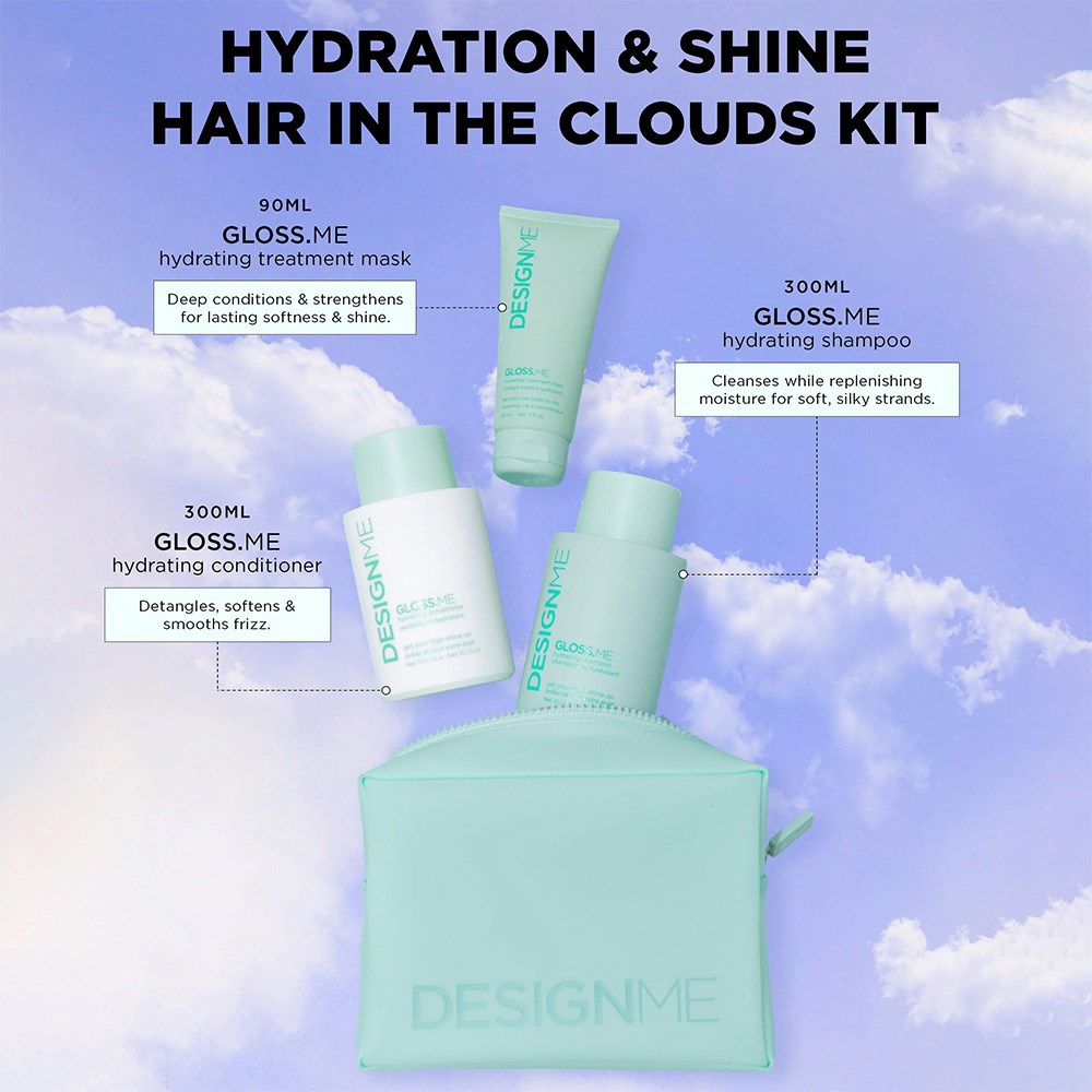 Float through your wash and style routine with limited edition DESIGNME Hair in the Clouds Kits. Perfect for gifting, these kits are available in Volume, Curl and Hydration. Each kit is packed up in a cute, pastel-coloured and reusable pouch.