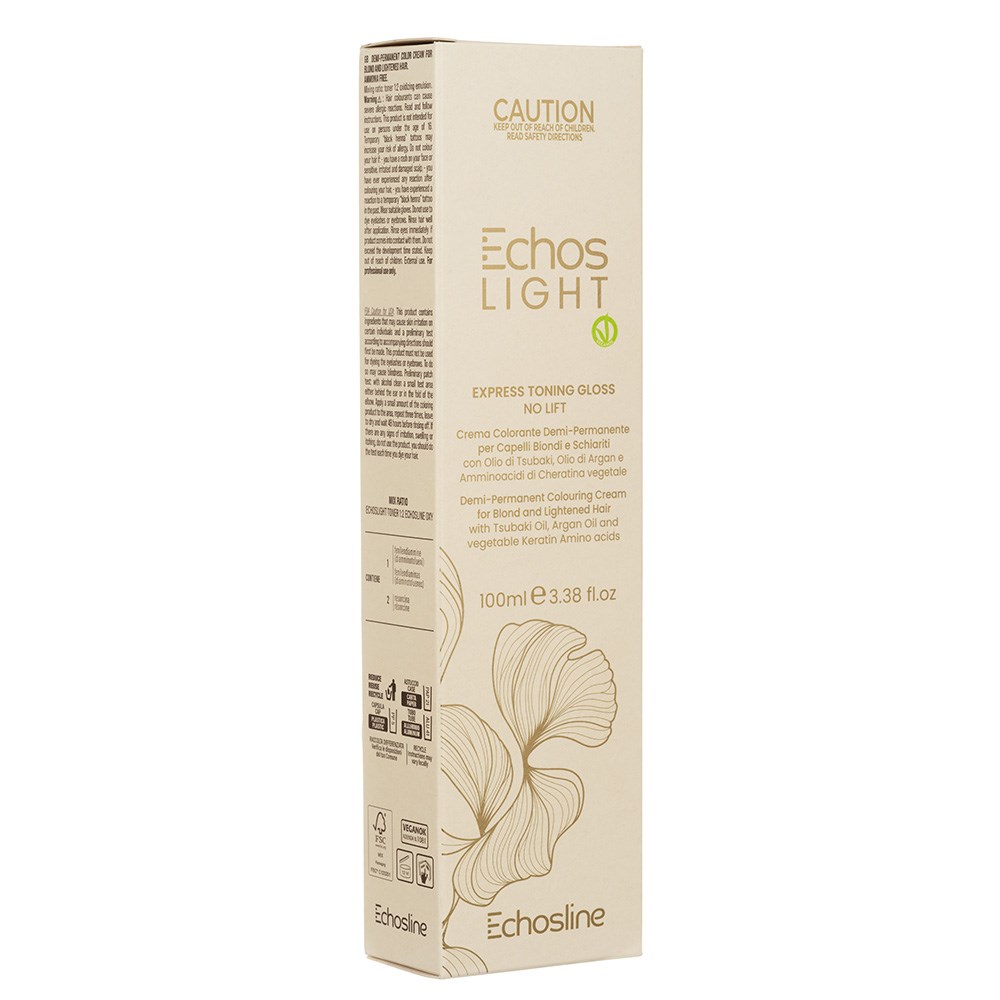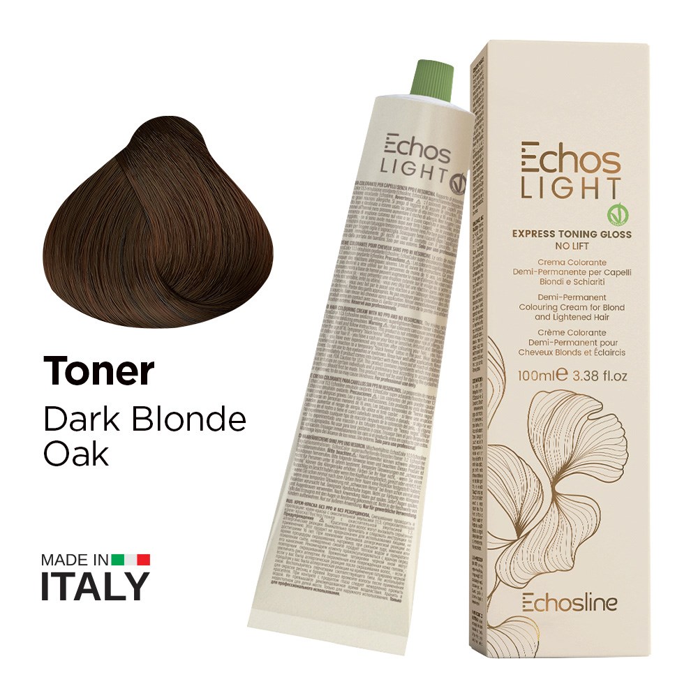 Pre-lightened hair longing for a boost? Echos Color Vegan Light Toning Gloss Oak is the answer. Ammonia-free, anti-yellow with no lift, this toner is the 100% vegan, sustainable solution to vibrant, brilliant colour. Infuse maximum beauty into pre-lightened and bleached hair. Made in Italy, this demi-permanent colouring cream is enriched with protective Tsubaki oil, argan oil and vegetable keratin amino acids. Brighten blondes, add diffused tones with luscious shine and neutralise unwanted warmth, all in one fast step.