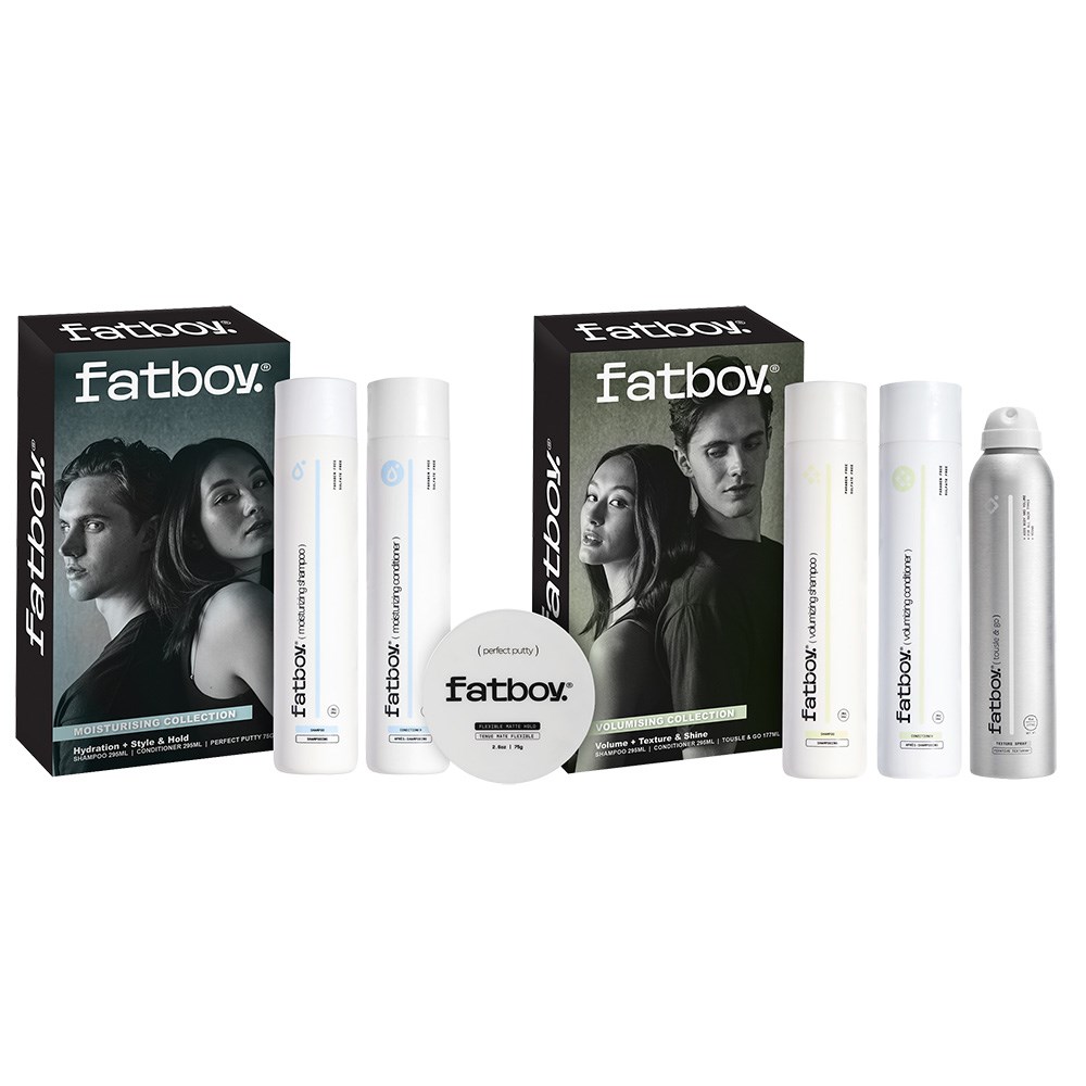 Fatboy Moisturising Shampoo is powered by quinoa oil, coconut oil and avocado oil to moisturise and nourish. Hair shines after every use. Fatboy Moisturising Conditioner harnesses rice protein to fortify hair by rebuilding, nourishing and hydrating. Fatboy Perfect Putty is the OG for matte texture and volume on all hair types.