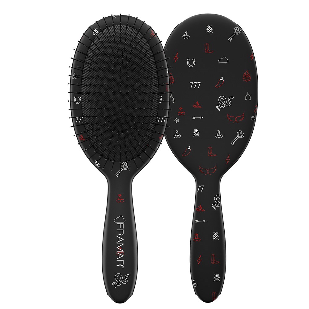 Your lucky charms for detangling! Framar Detangle Hair Brush Get Lucky Black in Ace is an adorable blend of playful design and serious detangling power. This brush effortlessly detangles wet or dry hair with ease. Ideal for all hair types, including wigs and hair extensions. Flexible bristles deliver pain-free brushing. Not only a detangler, this brush is also great at brushing colour or toner through hair for even application or assist in styling, such as brushing out curls.