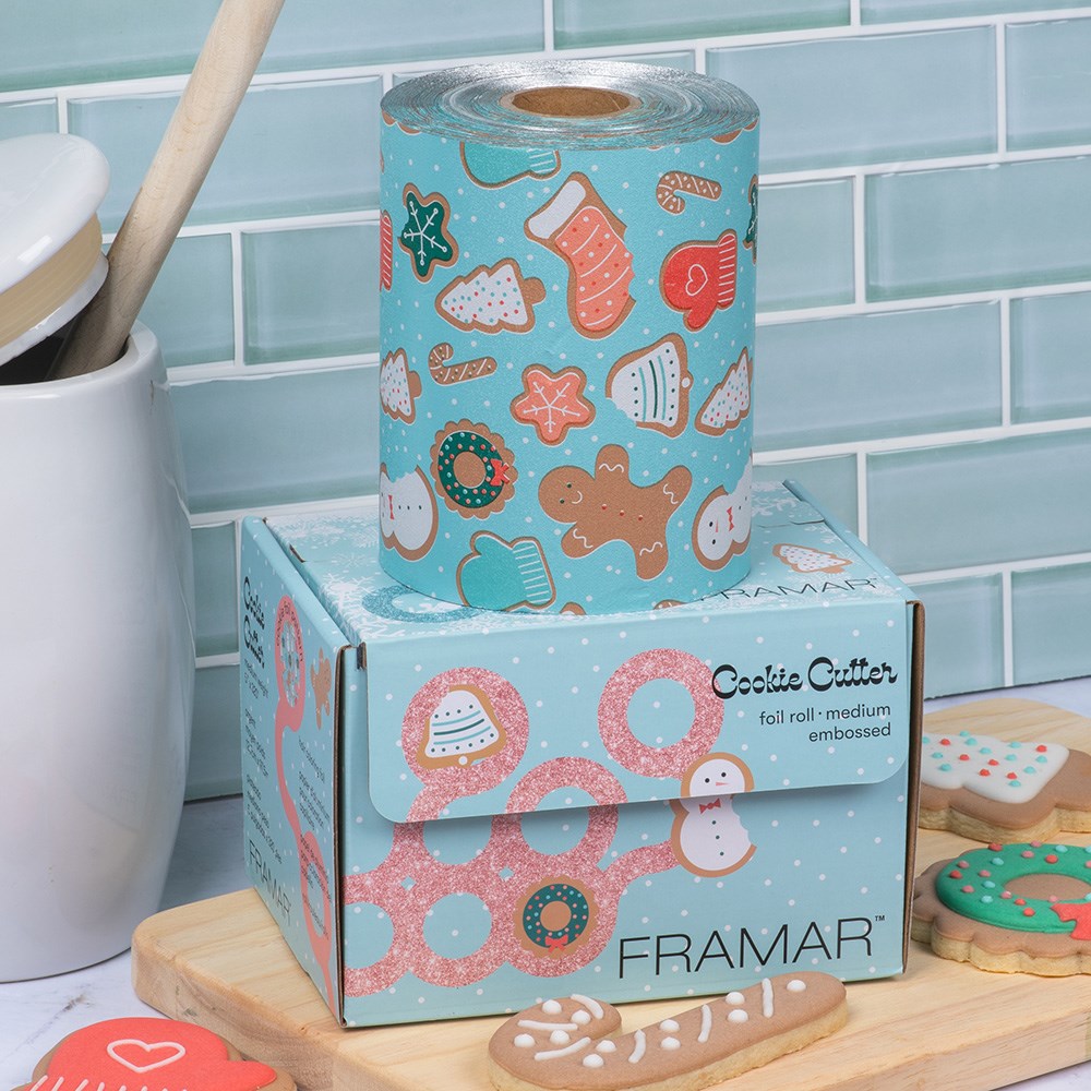 Bake this season bright! Framar Embossed Foil Roll Cookie Cutter is the perfect non-slip grip embossed foil. The embossed texture prevents slippage so you can breeze through any colouring service. High quality foil in a cookie pattern guaranteed to make every process more fun for you and your client. Rolls out easily with no-hassle cutting. Simply cut to your desired length with the inbuilt cutting blade in the dispenser box. Great for long hair and minimises waste. Sprinkle your day with fun!