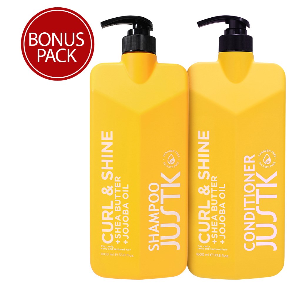 From woeful to wow, one wash at a time! Professional-grade formulas which solve all the problems of the hair rainbow. JustK Curl & Shine Duo 1L delivers happy, shiny curls. Infused with shea butter and jojoba oil to revive, moisturise and nourish thirsty curls. This 1L shampoo and conditioner duo makes amazing curls affordable!
