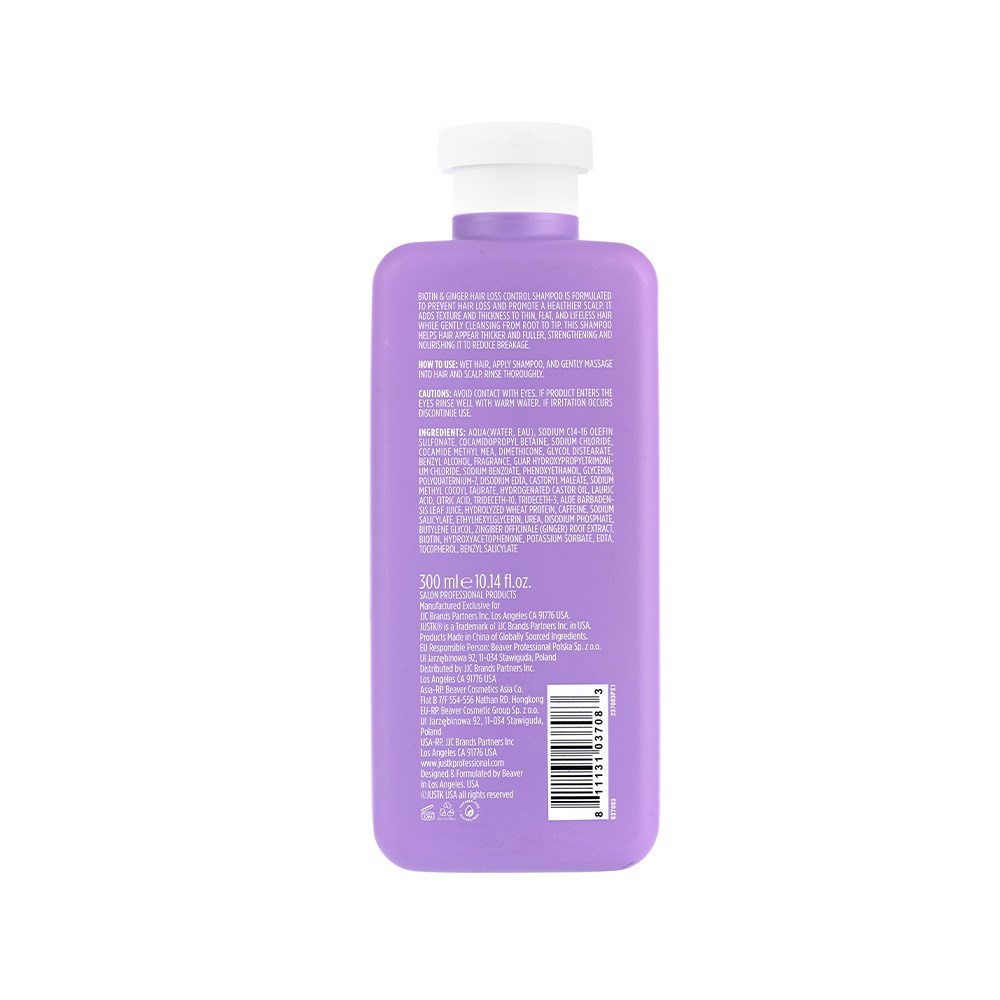 JUSTK HAIR LOSS CON SHAM 300ml BIOTIN & GINGER SHAMPOO HAIR LOSS CONTROL FOR THINNING
