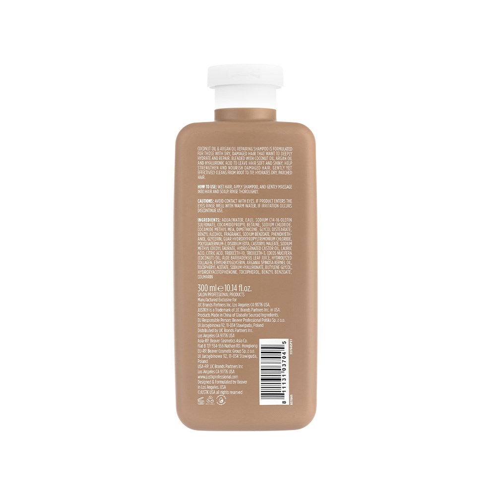 JUSTK REPAIRING SHAMPOO 300ml COCONUT & ARGAN OIL FOR DRY DAMAGED HAIR