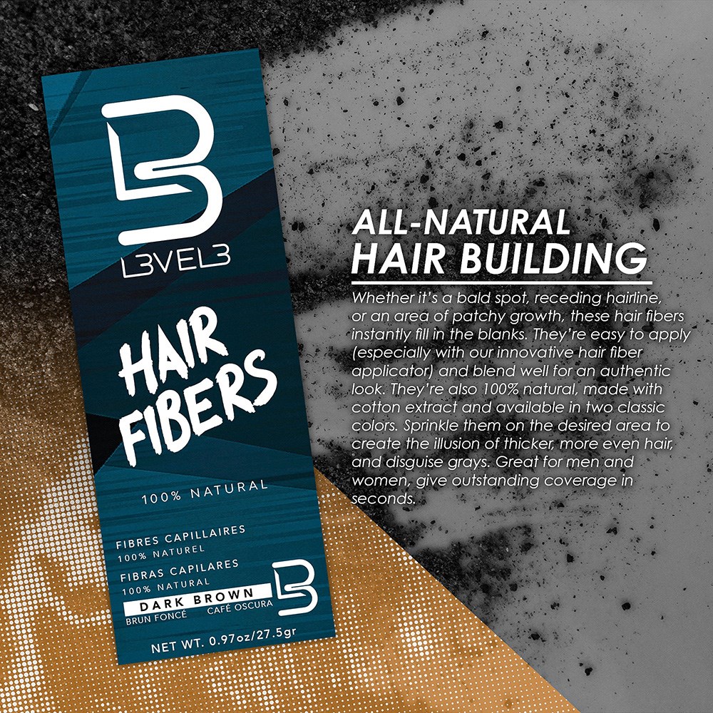 Easy to apply, natural-looking hair fibres which instantly create the appearance of thicker hair. L3VEL3 Hair Fibres immediately fill in the blanks, whether from an area of patchy growth, receding hairline or bald spot. The innovative hair fibre applicator (sold separately) ensures application is simple and the fibres blend with ease. Made from cotton extract. Great for either men or women, use any time you desire the appearance of thicker, more even hair with disguised greys.