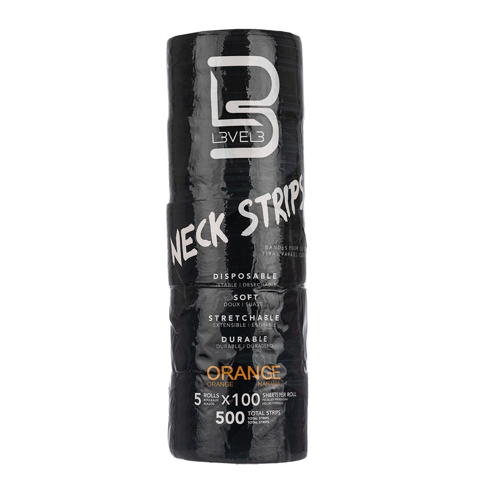 Added protection for your clients. L3VEL3 Neck Strips Orange are disposable neck strips which are pre-cut and self-adhesive. The paper is soft and stretchy for comfort, suiting all neck sizes. Prevent skin coming in contact with hair, liquid and dyes. Great value for premium, water resistant neck strips. Includes 5 rolls with 100 sheets per roll.