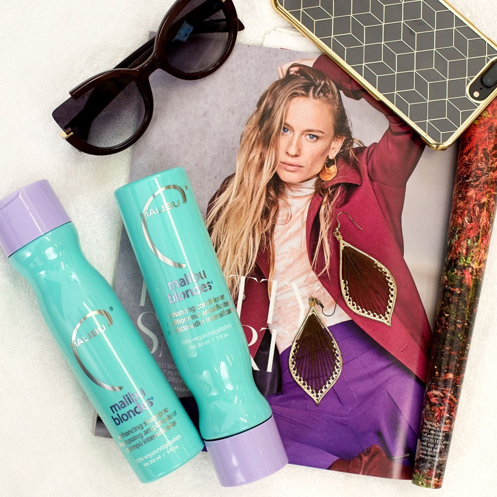 Brilliant blonde with shimmering shine! The 100% vegan Malibu C Malibu Blondes Enhancing Conditioner transforms natural blonde, bleached blonde and highlighted hair from dull to dazzling. With a mega-dose of hydrating antioxidants which fortify strands for maximum moisture, blonde is left fully loaded with shine and sheer brilliance.
