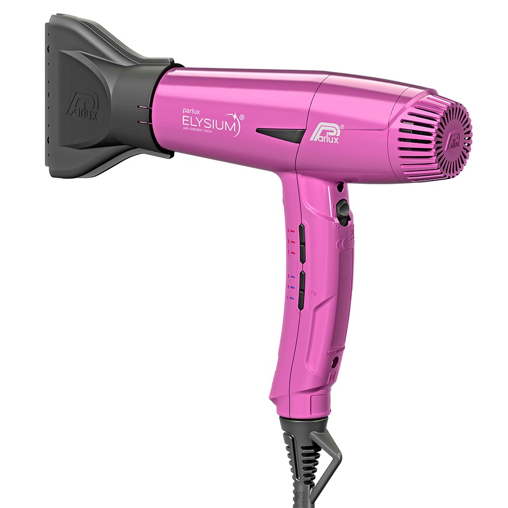 The first Parlux digital mini Hair Dryer. Designed to satisfy the demands of professionals, Parlux Elysium Hair Dryer and Diffuser Fuchsia a futuristic experience. With exceptional reliability, Parlux Elysium Hair Dryer is compact, light and powerful. Professional digital oversized mini-motor delivers a powerful 2,300 watts and 80m3/h airflow. 3 speed and 3 temperature settings for 9 versatile combinations. Air Ionizer Tech ionic technology for smooth, sleek results. Lightweight and ideally balanced with an ergonomic handle. Quick and easy cleaning with washable and replaceable sponge filter. Includes 3 concentrator nozzles, 2 of which are new AirFusion nozzles to optimise airflow for faster, more precise styling with added shine. Also includes Magic Compact Special Diffuser.
