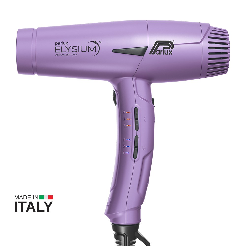 The first Parlux digital mini Hair Dryer. Designed to satisfy the demands of professionals, Parlux Elysium Hair Dryer Lilac is a futuristic experience. With exceptional reliability, Parlux Elysium Hair Dryer is compact, light and powerful. Professional digital oversized mini-motor delivers a powerful 2,300 watts and 80m3/h airflow. 3 speed and 3 temperature settings for 9 versatile combinations. Air Ionizer Tech ionic technology for smooth, sleek results. Lightweight and ideally balanced with an ergonomic handle. Quick and easy cleaning with washable and replaceable sponge filter. Includes 3 concentrator nozzles, 2 of which are new AirFusion nozzles to optimise airflow for faster, more precise styling with added shine. Made in Italy.