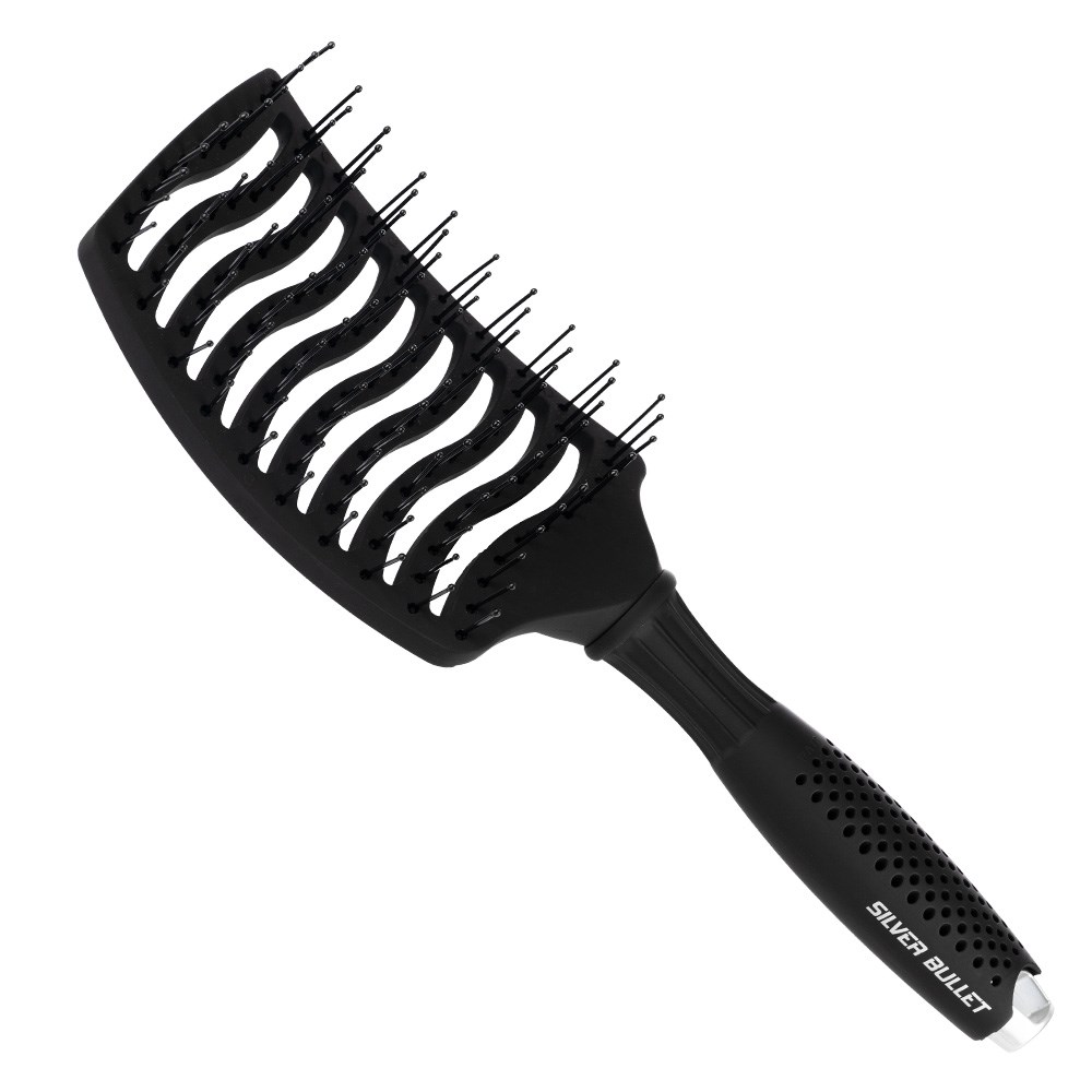 Hair as smooth and soft as velvet. Silver Bullet Black Velvet Curved Vent Paddle Hair Brush is perfect for detangling, smoothing and drying. The vented design helps to speed up blow-drying to enhance your efficiency, while the curved head contours to the scalp for improved comfort. Featuring durable nylon bristles, the Silver Bullet Black Velvet Curved Vent Paddle Hair Brush makes detangling, smoothing, and styling hair effortless while delivering salon-quality results.