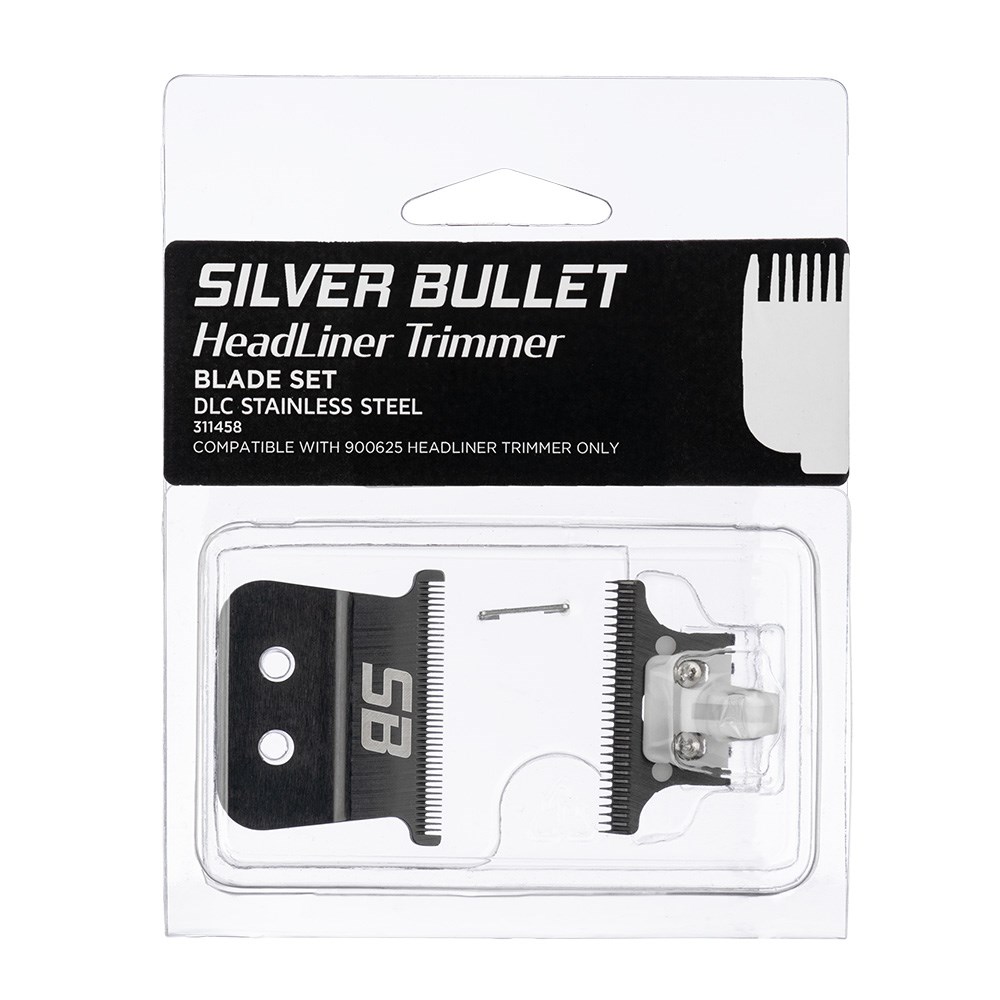 Blade set for the Silver Bullet HeadLiner Hair Trimmer. This blade set includes a fixed blade and moving blade made from DLC stainless steel. Ultra-close cutting. Compatible with Silver Bullet HeadLiner Trimmer only. Easy to replace.