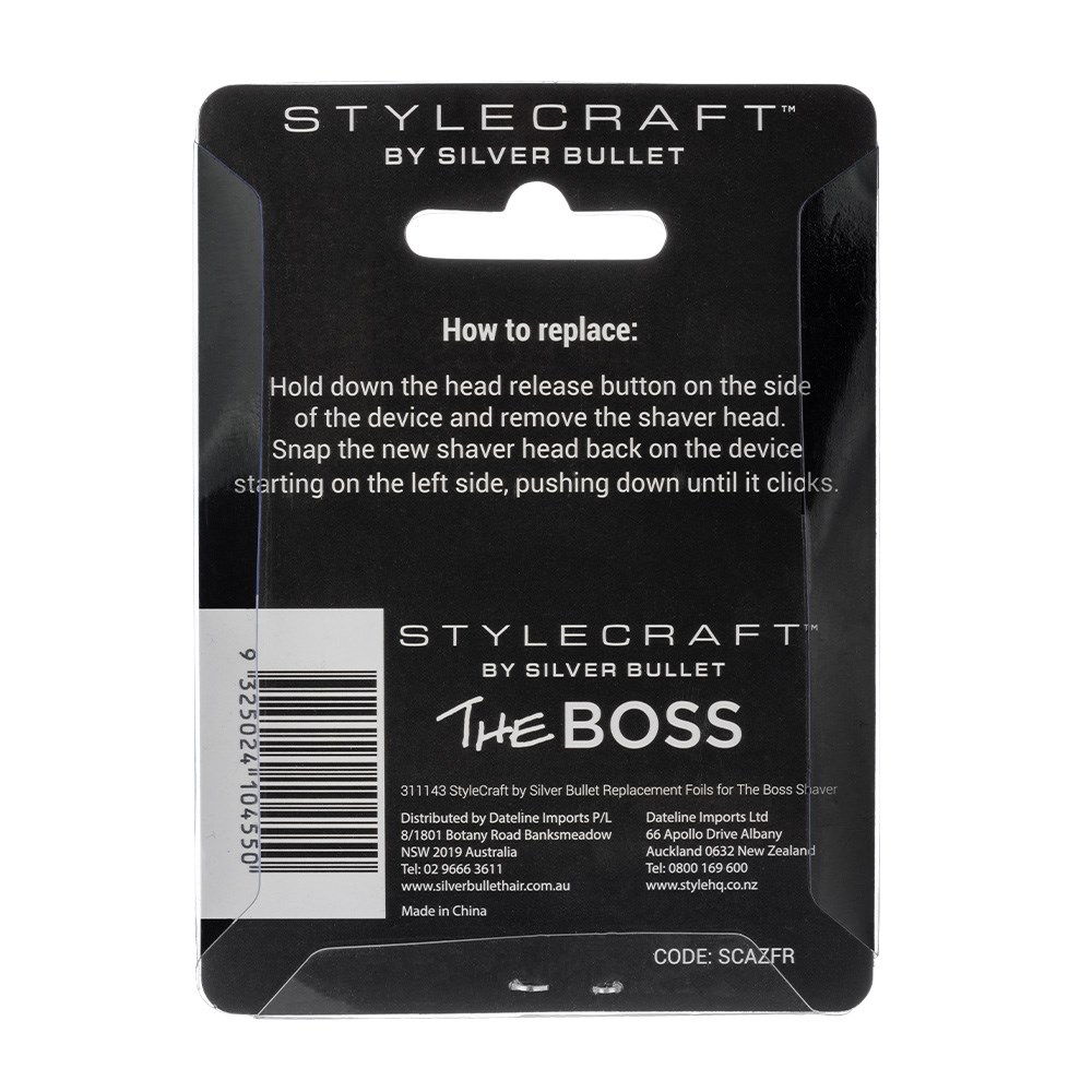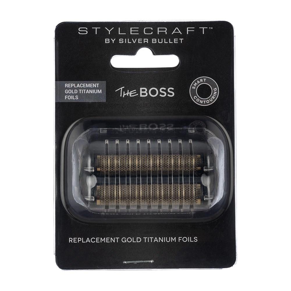 Replacement foil head for the StyleCraft by Silver Bullet The Boss Shaver. With two gold titanium foils, this replacement head is smart contouring and hypoallergenic. Super-close, ultra-thin for the best possible, uniform shave. Easy to replace.