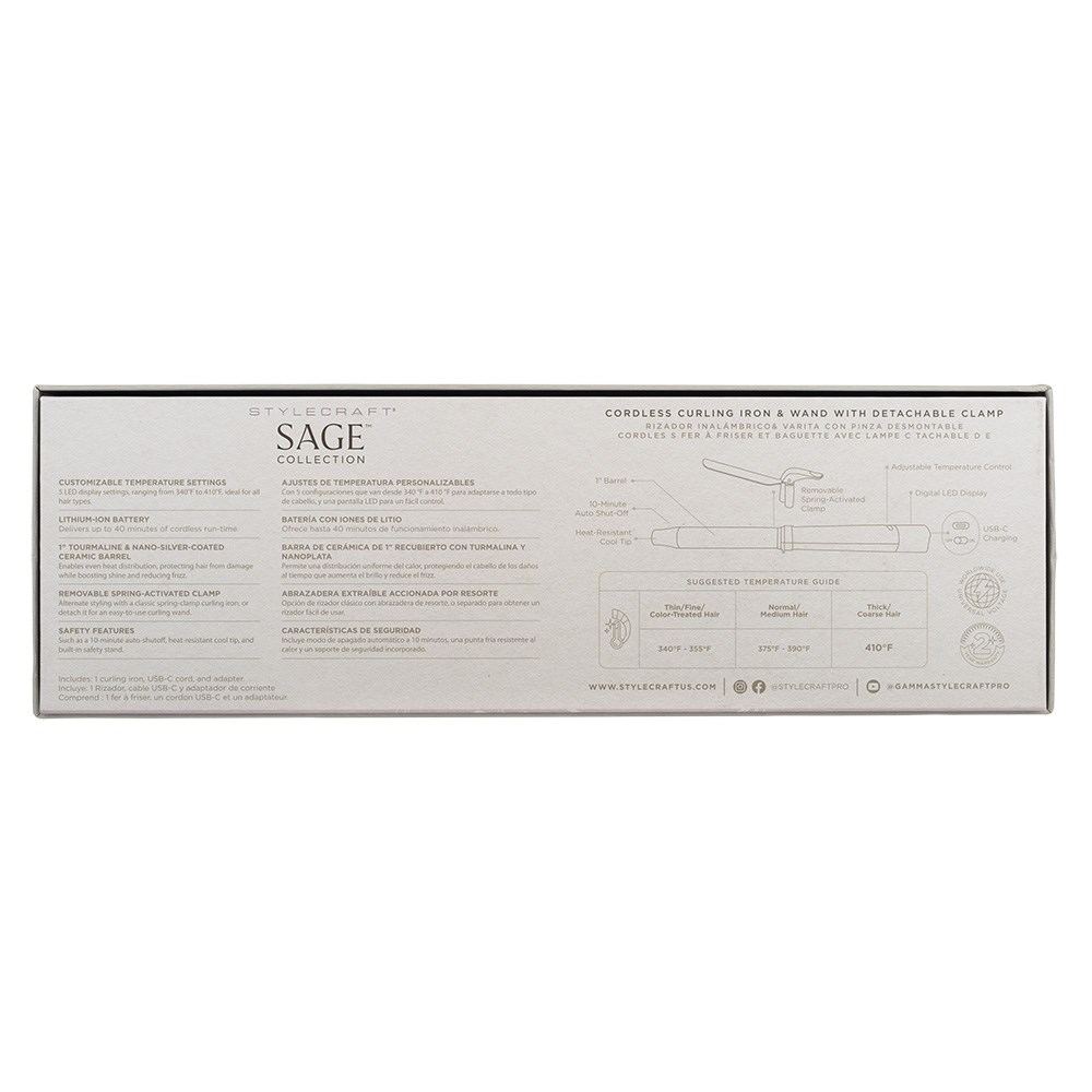 StyleCraft by Silver Bullet Sage Cordless Curling Iron with Detachable Clamp
