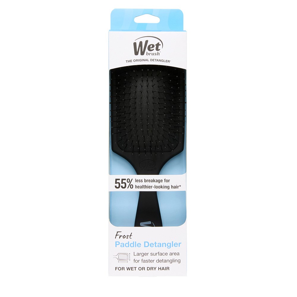 Meet the WetBrush Frost Paddle Detangler Black. Spread conditioning treatments and hair masks through hair with effortless ease. The vented design makes it easy for water and excess product to escape the brush, ensuring there’s no leftover build-up. Cleaning the brush is a breeze - just rinse and repeat. 20% larger surface area spreads treatments and masks evenly through hair. Also adept at detangling, ultra-soft IntelliFlex bristles glide through tangles without pulling or breaking hair.