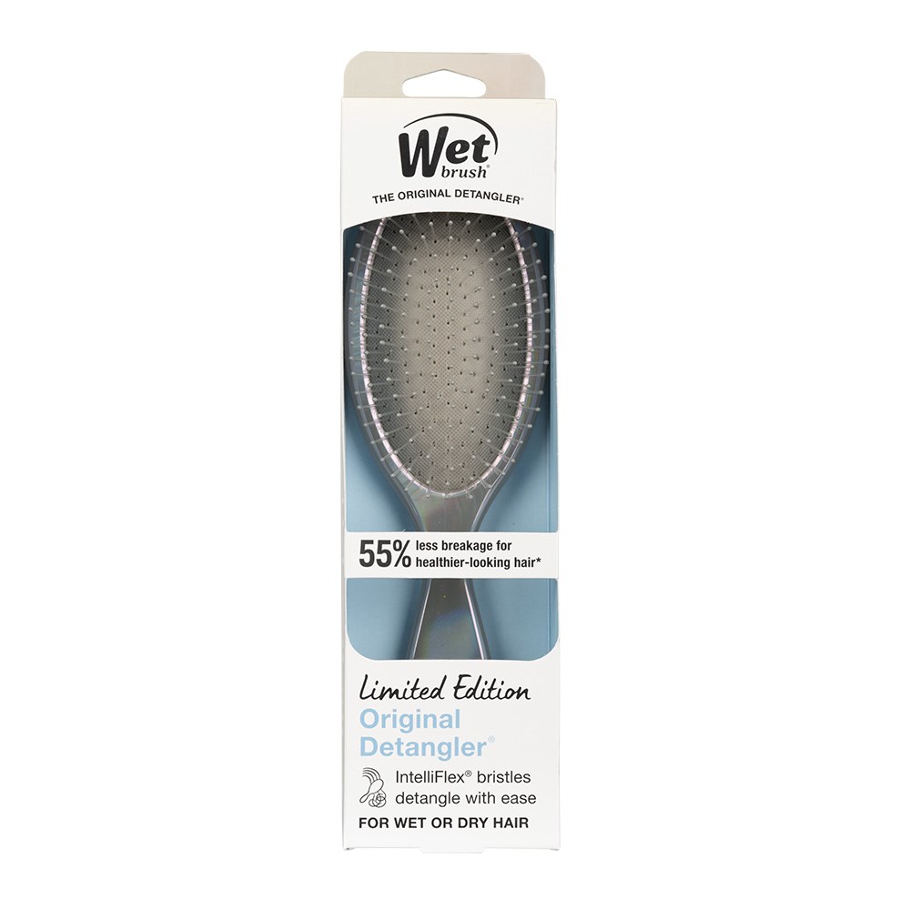 WetBrush Iridescence Icon Detangler Chrome turns detangling into an illuminating experience. Pearly hues with rainbow reflects to inspire. Iridescent icons of detangling.