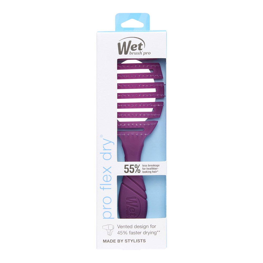 The innovative way to speed up blow-drying time. WetBrush Pro Frost Flex Dry Hair Brush Purple features an open, flexible vented design to allow moisture to be removed from hair faster. Clever OmniFlex brush head flexes in every direction to contour to the scalp. With heat resistant HeatFlex bristles and an ergonomically advanced design, WetBrush Pro Frost Flex Dry is designed by stylists for stylists.
