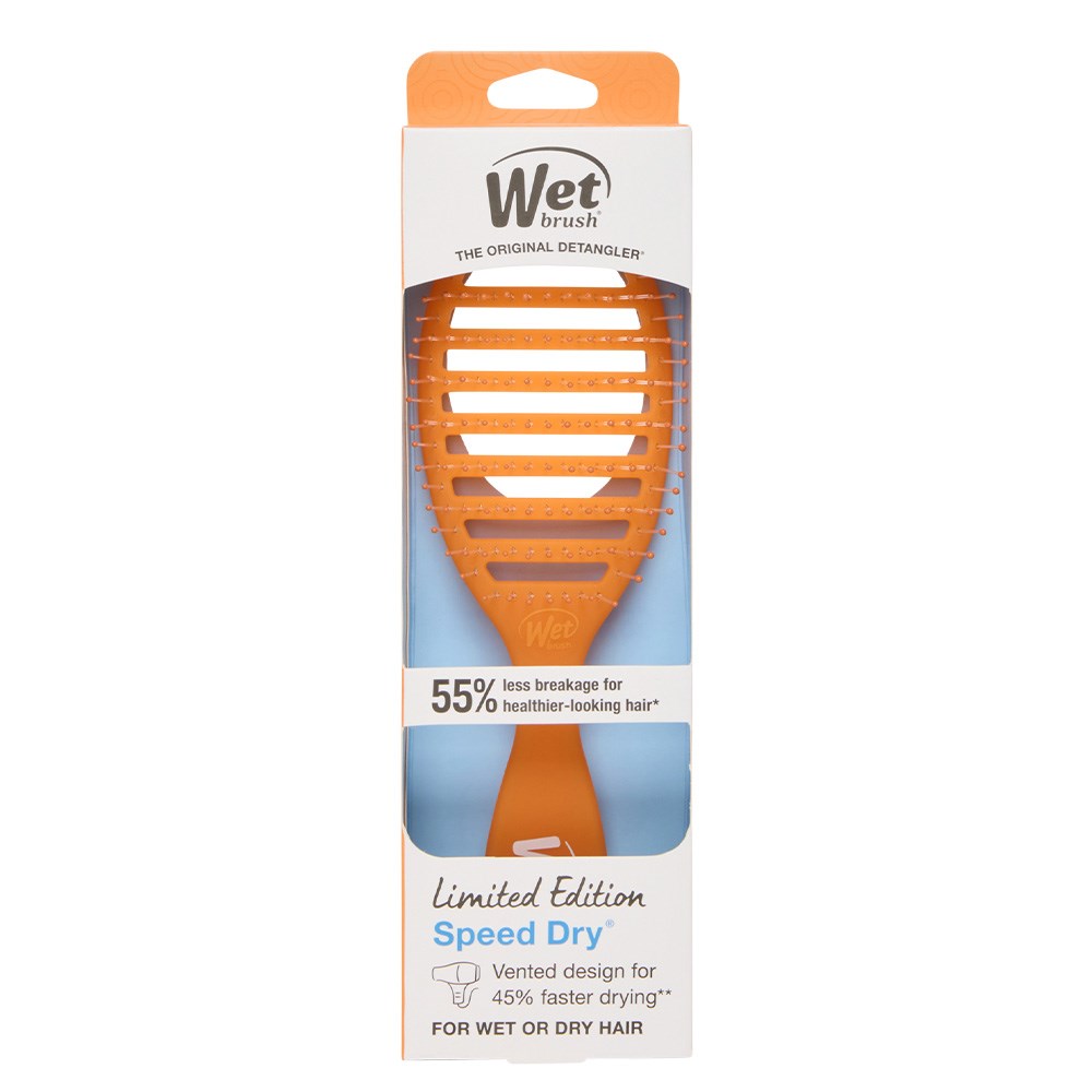 Meet the WetBrush Summer Quenchers Speed Dry in Orange. Dry hair without drying it out. The Speed Dry’s vented design speeds up drying time by allowing moisture to escape faster. Heat-resistant HeatFlex bristles gently detangle while blow-drying. Skip the extra heat and avoid damage, helping to keep hair happier. Brush design contours to scalp for extra comfort. Limited edition.